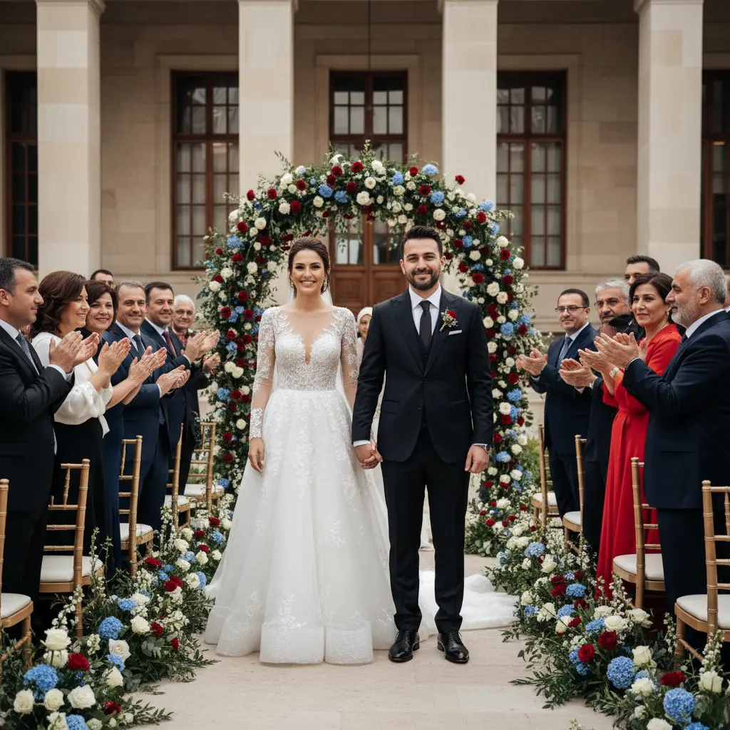 The marriage vows were exchanged by Altındağ Mayor Veysel Tiryaki, who officiated the ceremony. Following the formal proceedings, the marriage certificate was presented to the newlywed couple by Ömer Faruk Belviranlı, the Director General of Fine Arts. This gesture added a touch of official recognition and artistic blessing to the occasion.